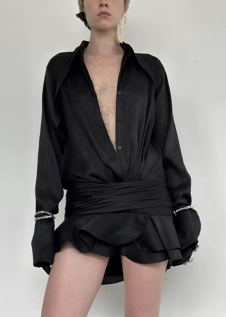 Stylish White Peter Pan Collar Wrinkled Solid Cotton Shirts Dress Fall