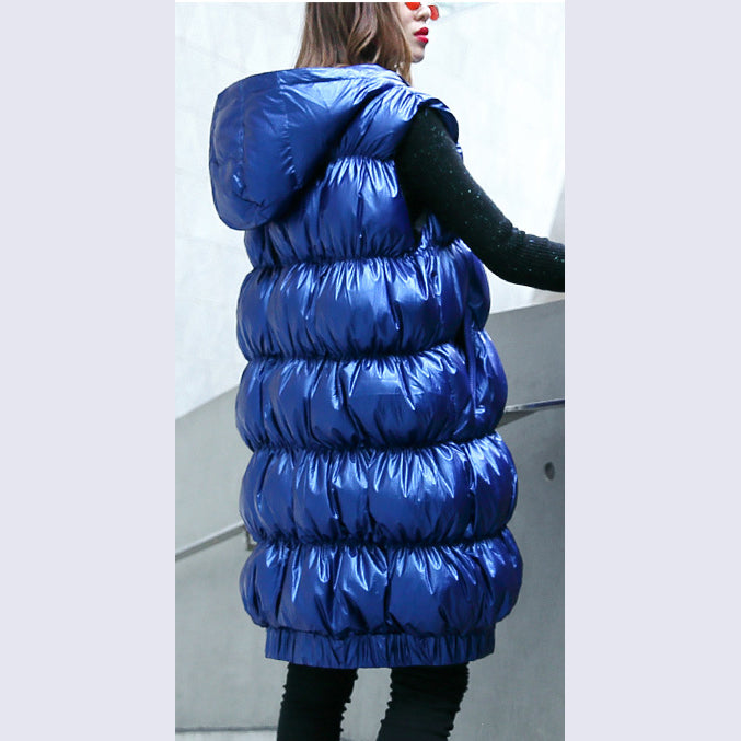thick gray down jacket casual hooded zippered Parka fine Sleeveless tunic coat