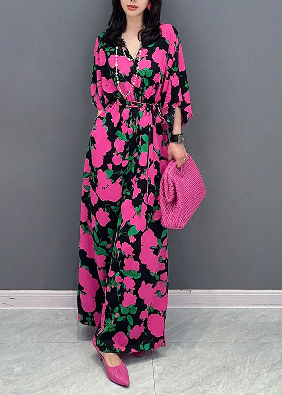 Unique Rose V Neck Print Patchwork Chiffon Jumpsuits Summer