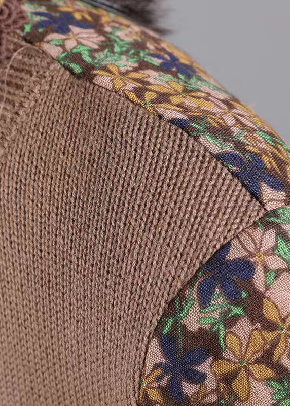 Vintage Flower Knitted Lace Drawstring Splice Fake Two Piece Dress Autumn