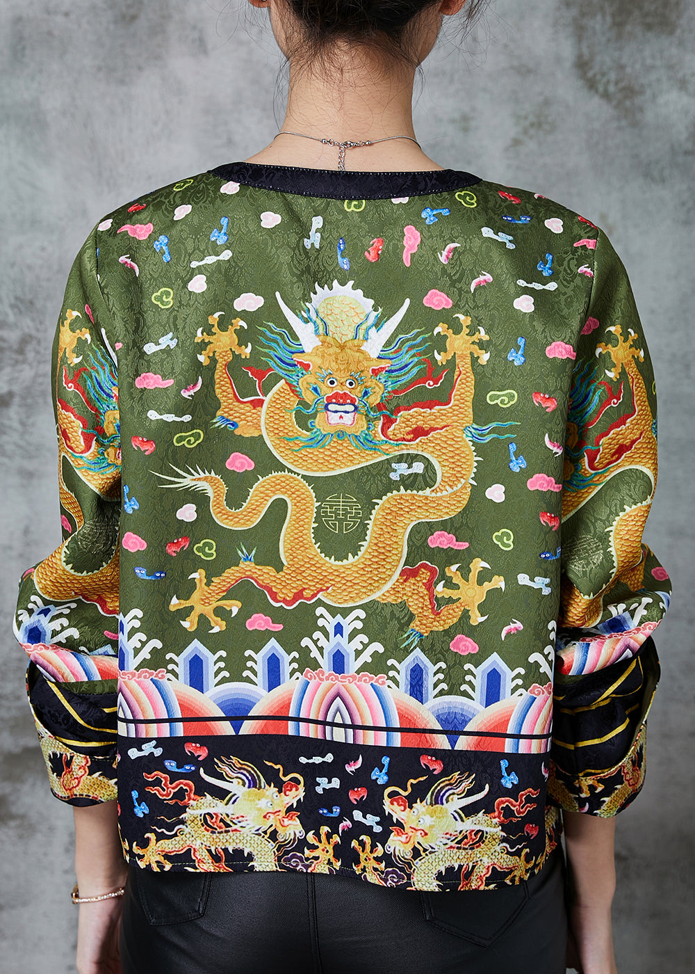 Vintage Green Embroidered Patchwork Silk Coat Spring
