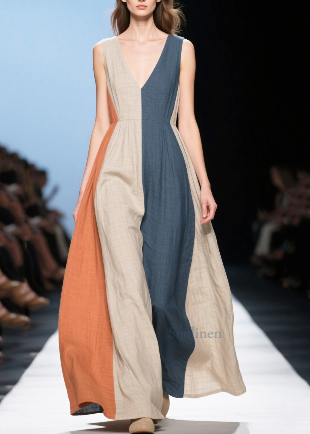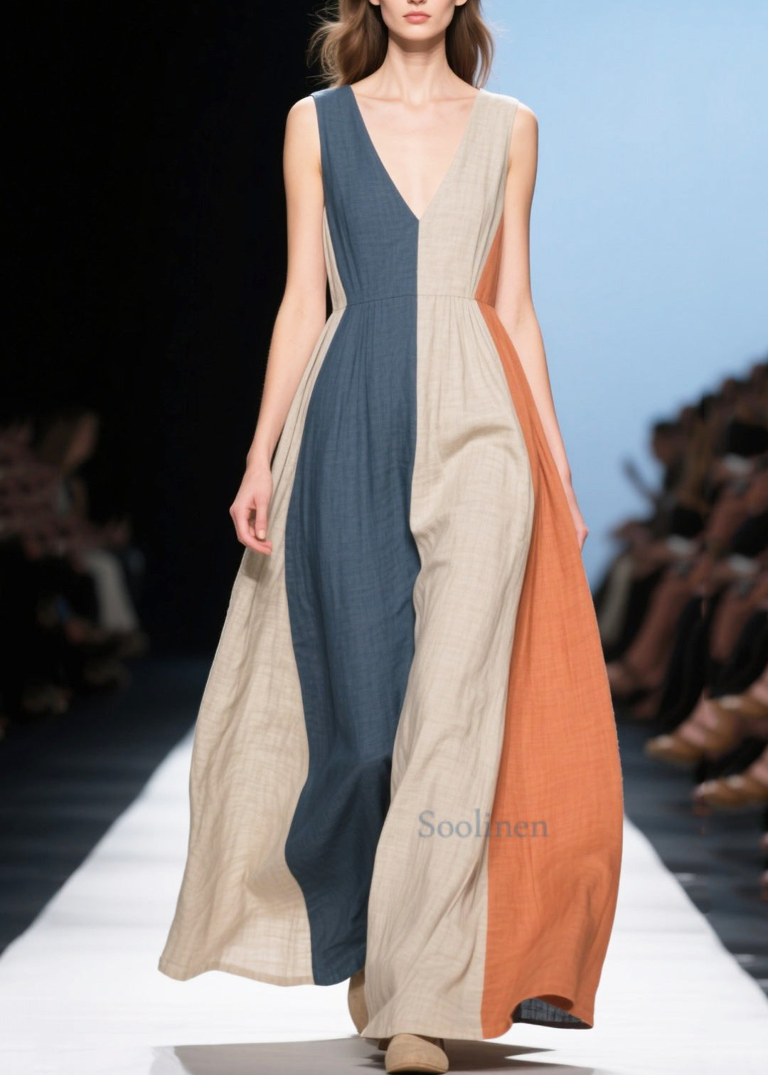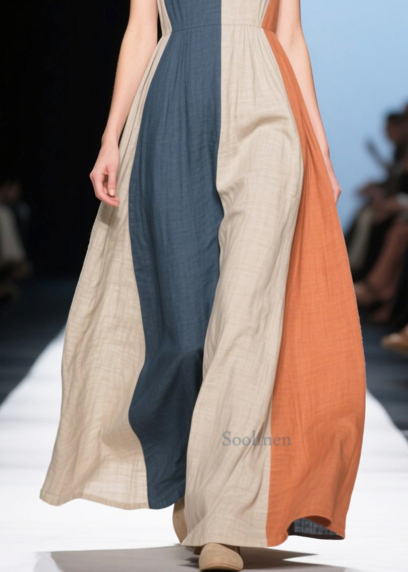 Vintage Multicolour Exra Large Hem Cotton Long Dresses Summer