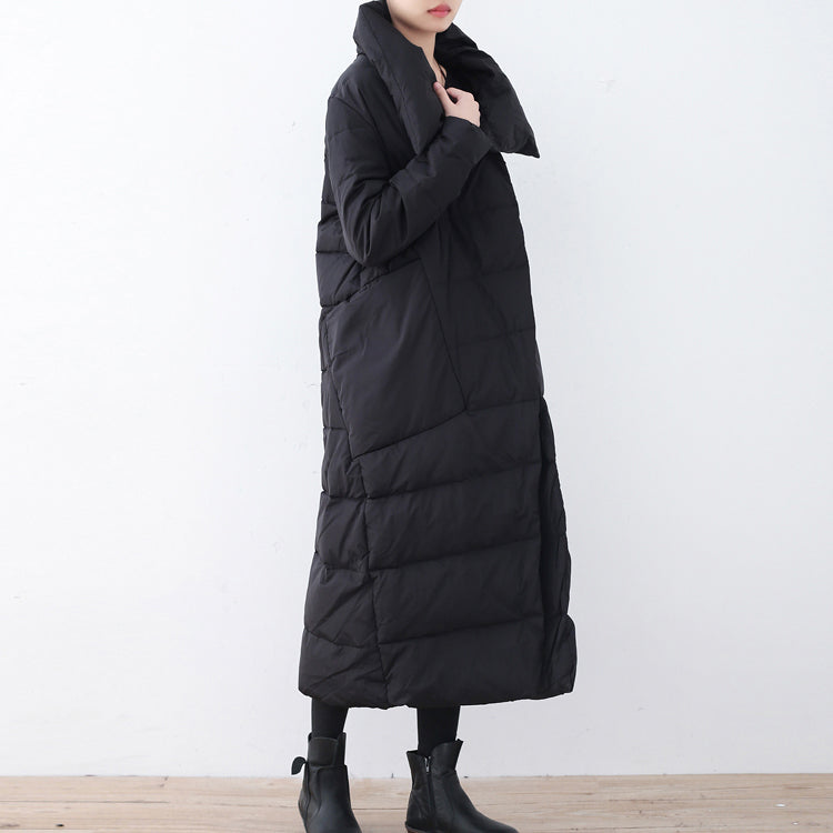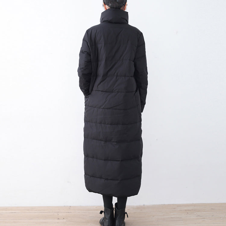 Warm black down overcoat Loose fitting down jacket New high neck overcoat