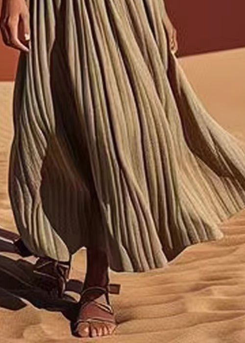 Women Grey Solid Elastic Waist Cotton Pleated Skirt Summer