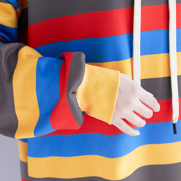 Women Striped Hooded Dresses Female Casual Loose Pullover Dress