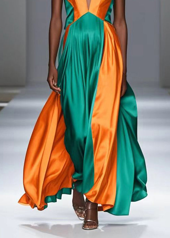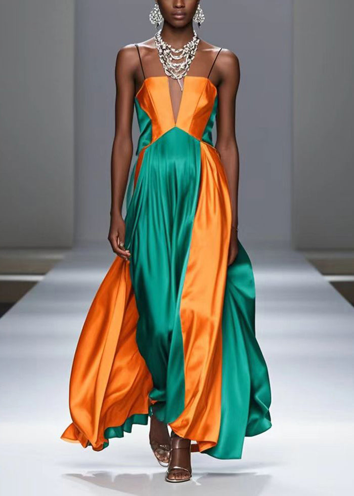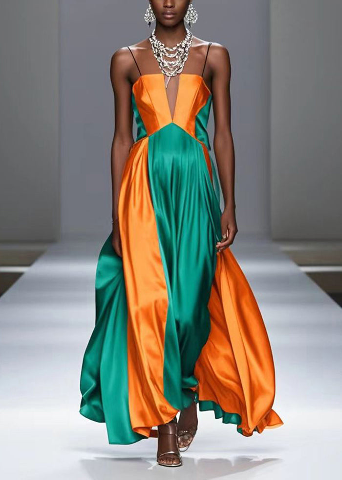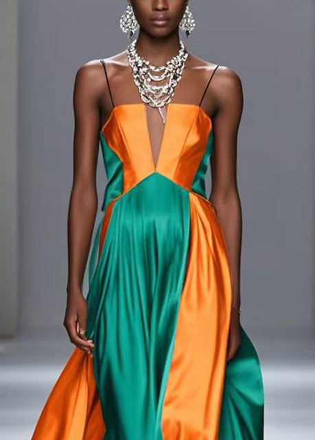 Yellow Patchwork Silk Spaghetti Strap Dress Exra Large Hem Summer