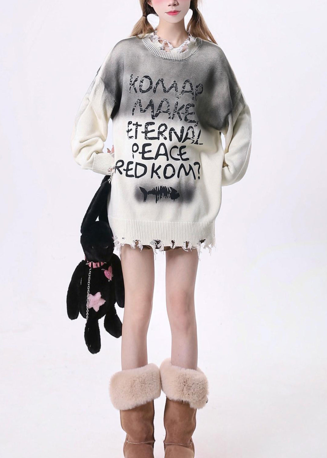American Style Apricot Graphic Ripped Knit Sweaters Spring