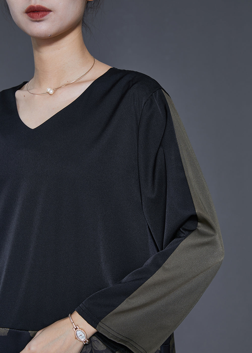 Art Black Oversized Patchwork Print Cotton Two Pieces Set Spring