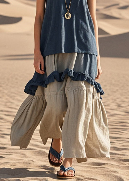 Art Navy Ruffled Patchwork Cotton Party Dress Summer