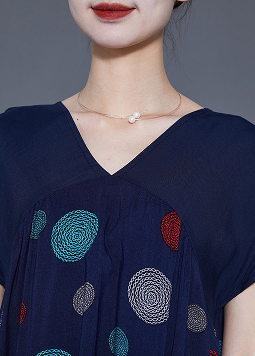 Art Navy V Neck Patchwork Print Cotton Robe Dresses Summer