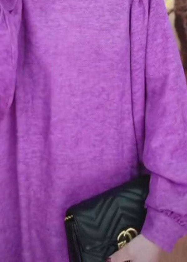 Art Purple Ruffled Patchwork Cotton Straight Dresses Long sleeve