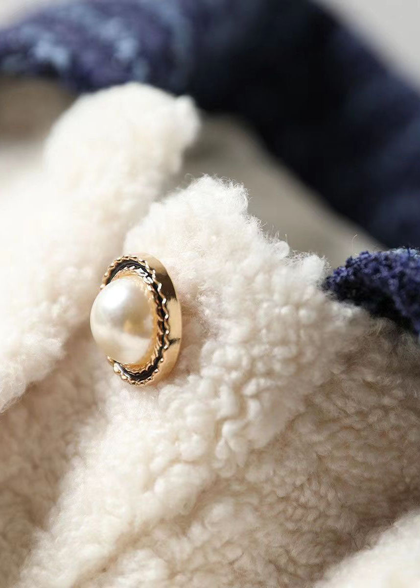 Art White Peter Pan Collar Pockets Patchwork Faux Fur Jackets Fall