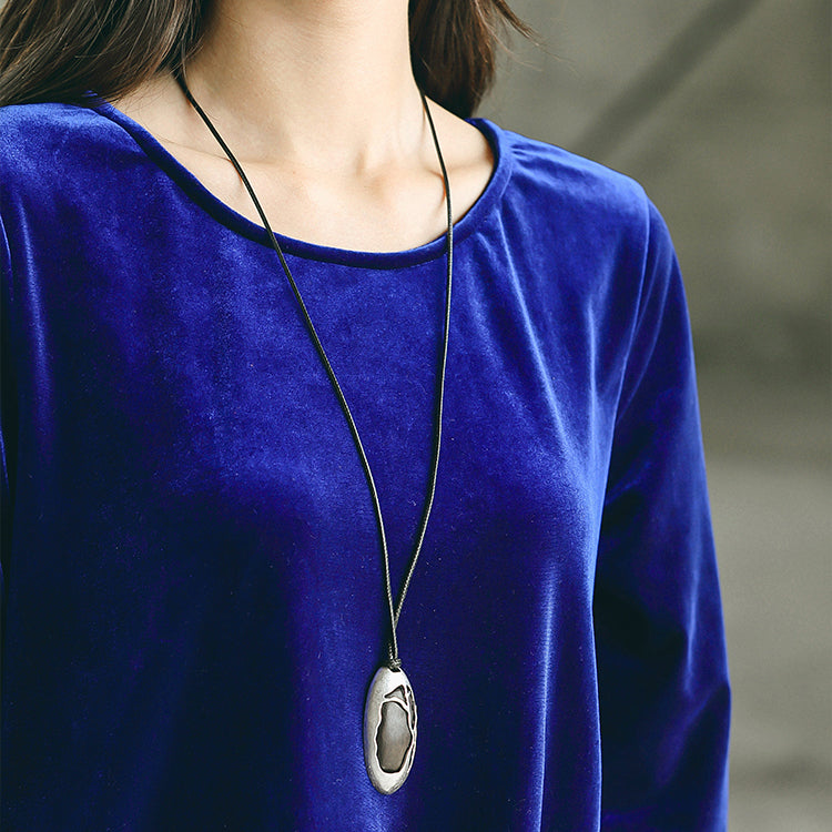 baggy blue natural plus size O neck gown top quality baggy dresses
