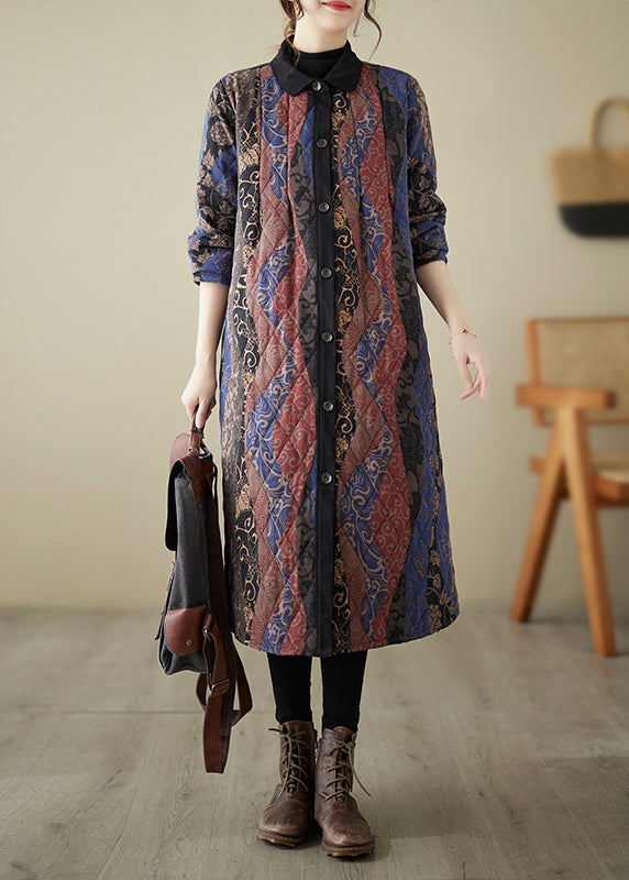 Beautiful Blue Peter Pan Collar Button Cotton Filled Long Parka Winter