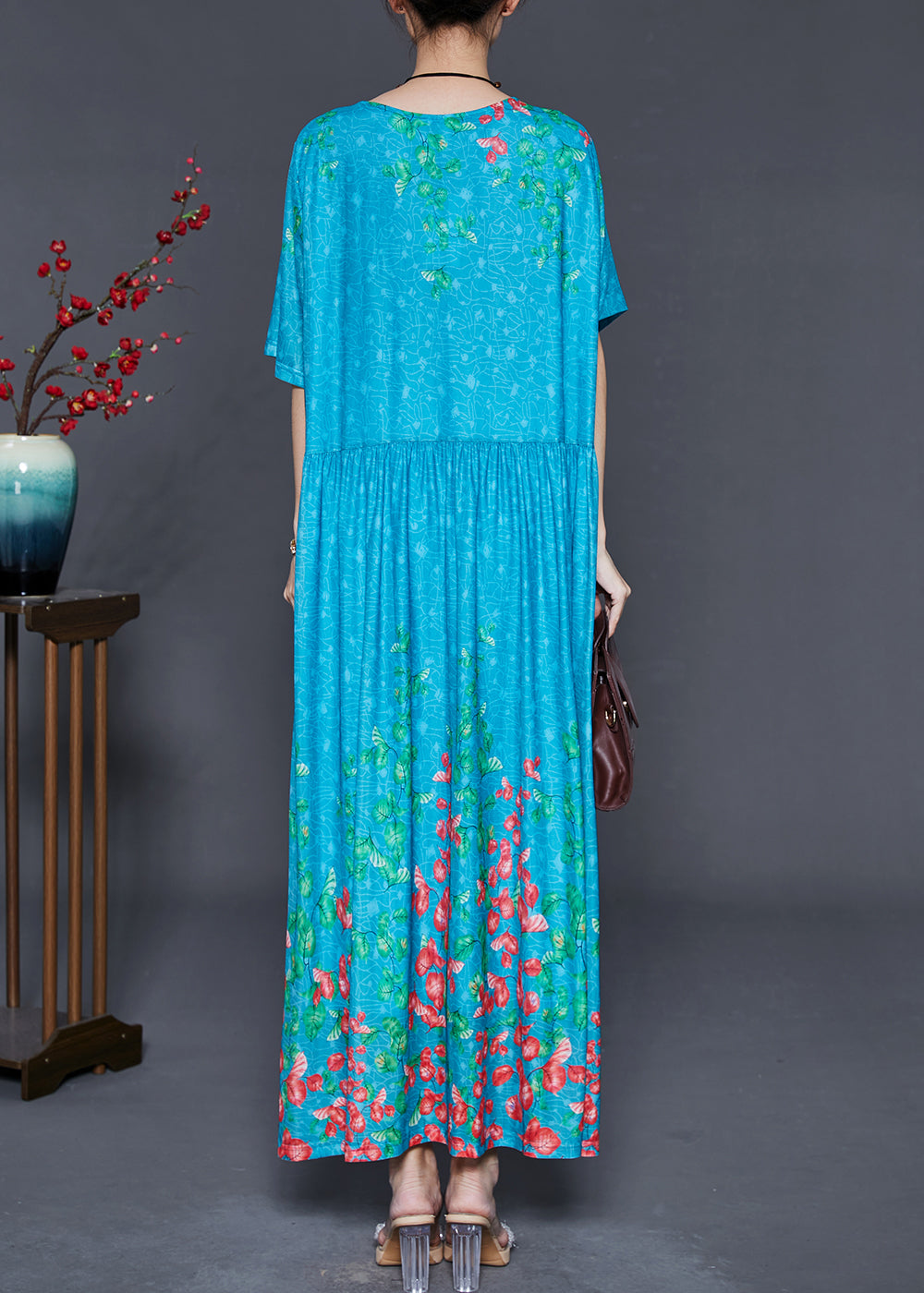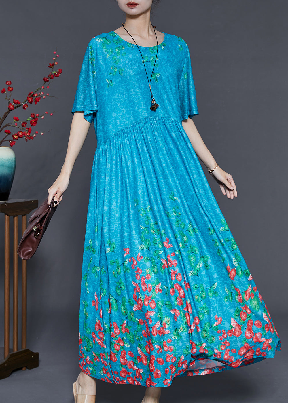 Blue Print Silk Holiday Dress Exra Large Hem Summer