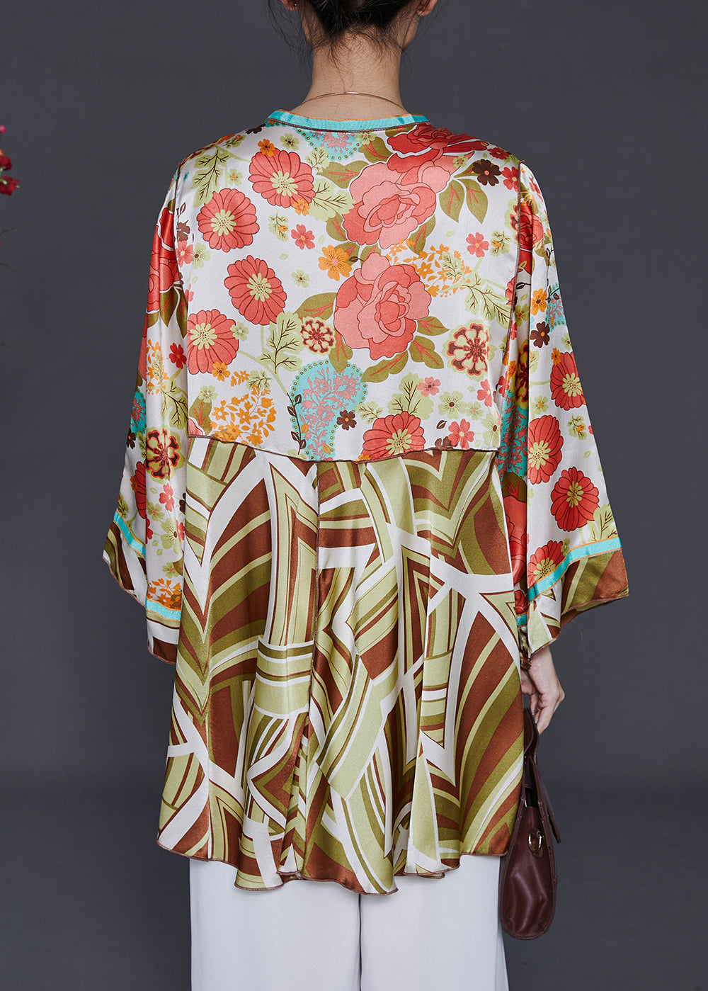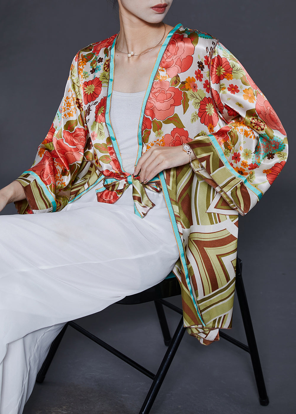 Bohemian Pink Print Lace Up Silk Cardigan Summer