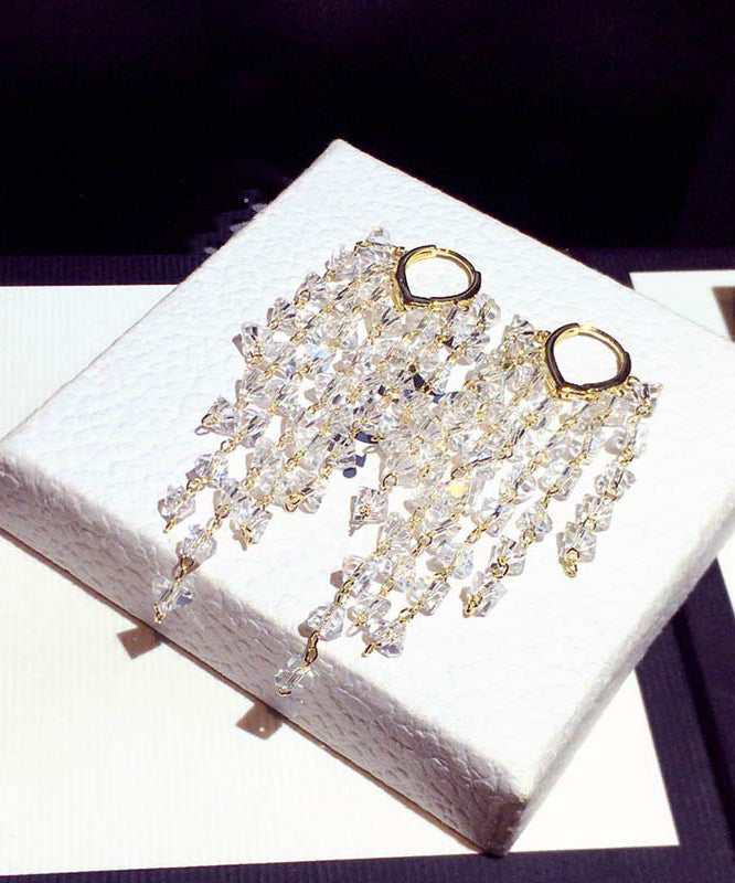Boho Black Sterling Silver Overgild Crystal Love Tassel Drop Earrings