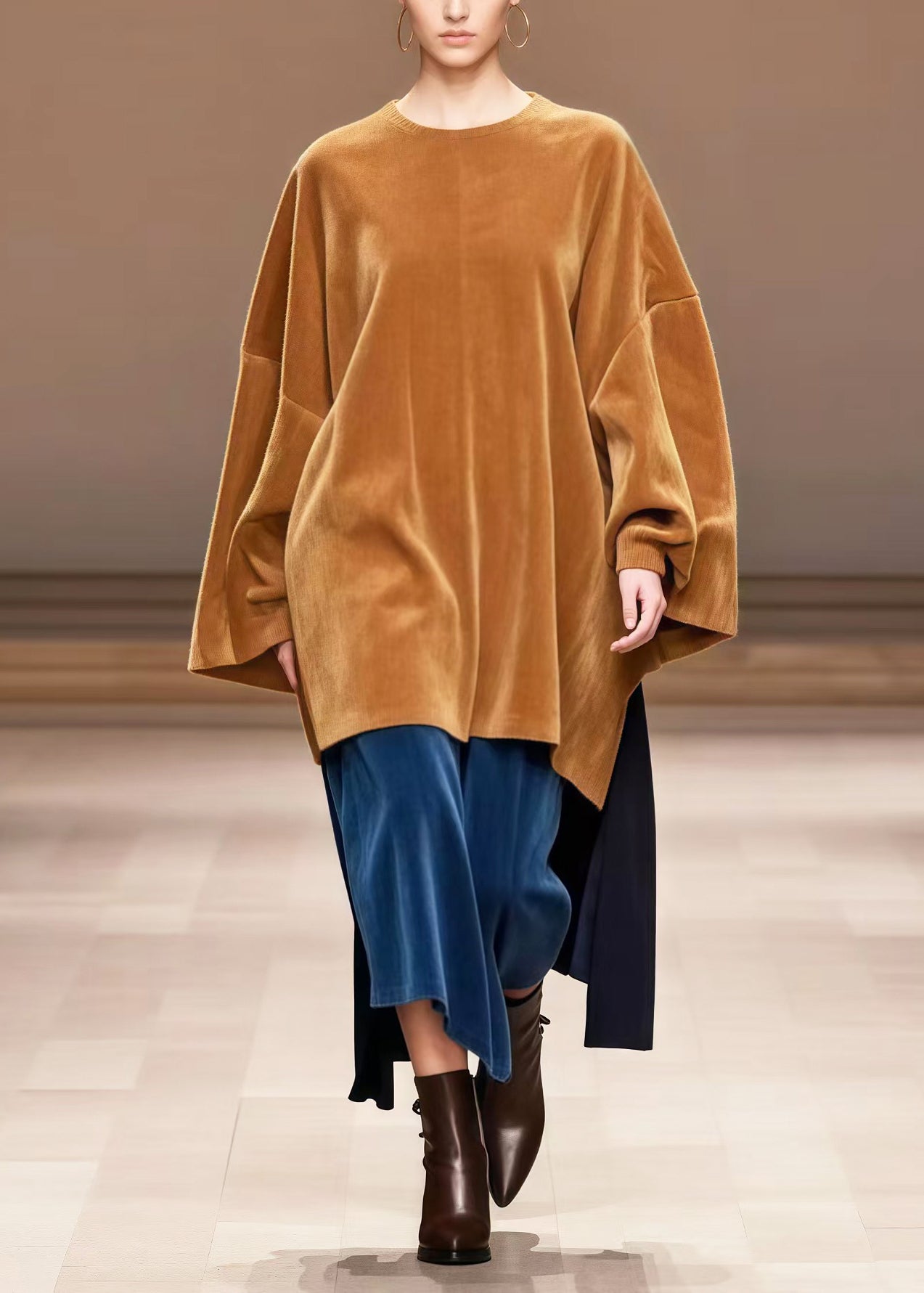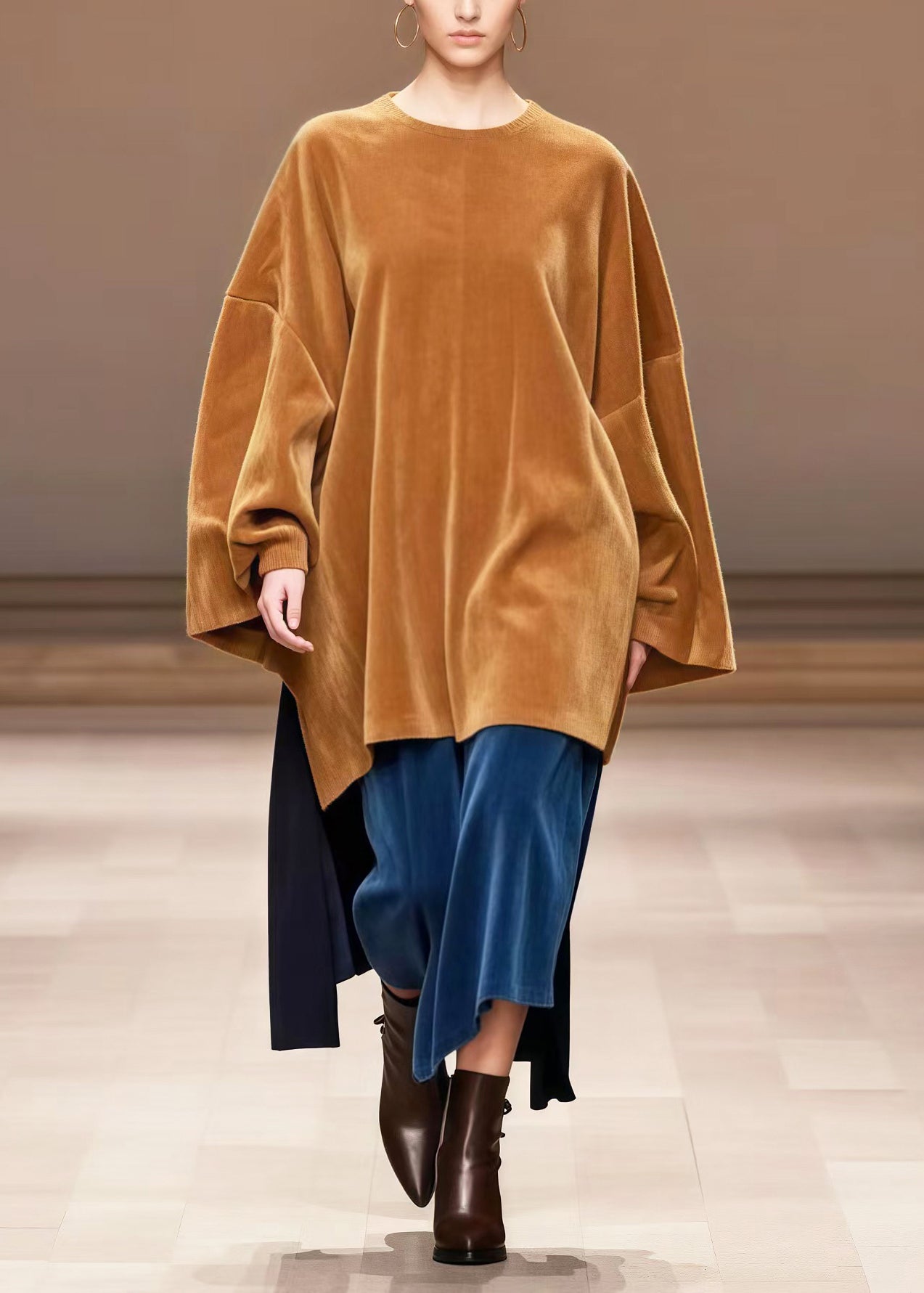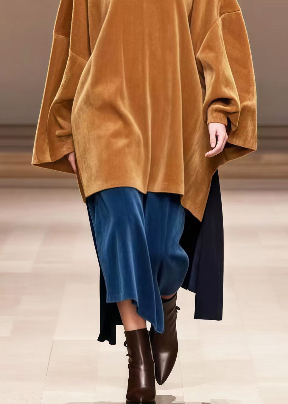 Boho Brown Oversized Patchwork Corduroy Fake Two Piece Dresses Spring