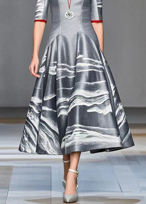 Boho Grey Print Exra Large Hem Cotton Dress Half Sleeve
