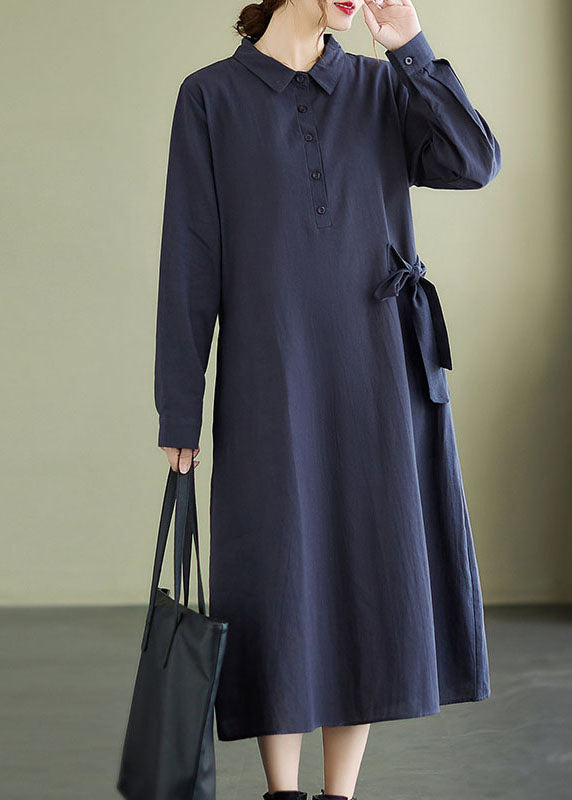 Boho Khaki Peter Pan Collar Button Dress Spring