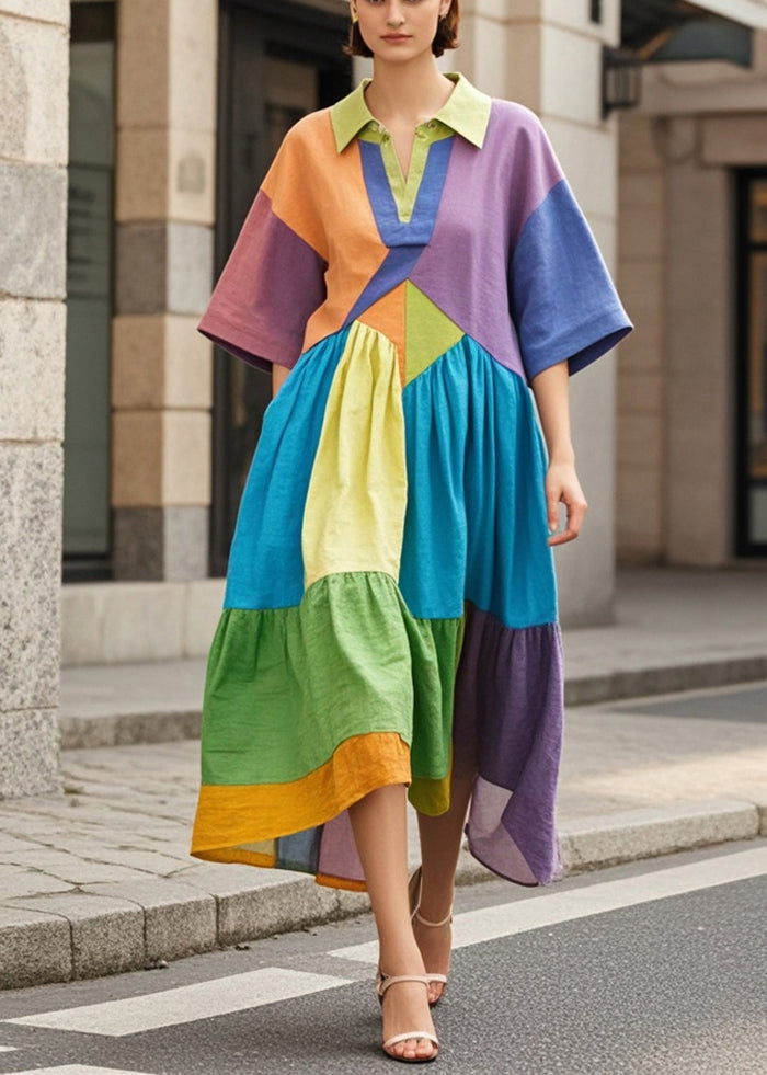 Boho Multicolor Oversized Patchwork Cotton Holiday Dress Summer