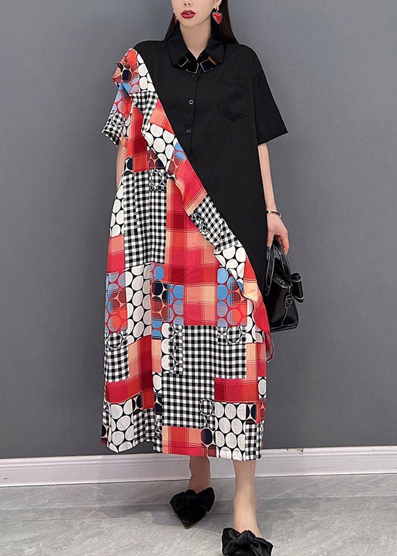 Boutique Black Peter Pan Collar Ruffles Patchwork Shirt Dresses Short Sleeve