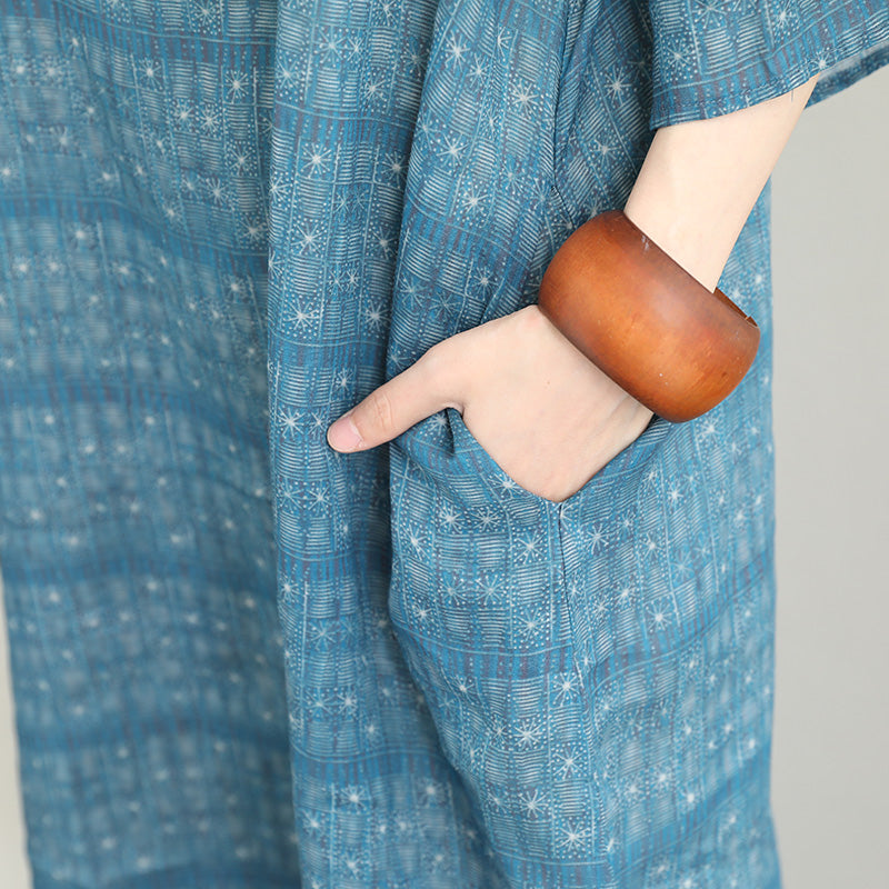 boutique blue pure linen dresses trendy plus size linen maxi dress Elegant o neck flare sleeve linen dresses