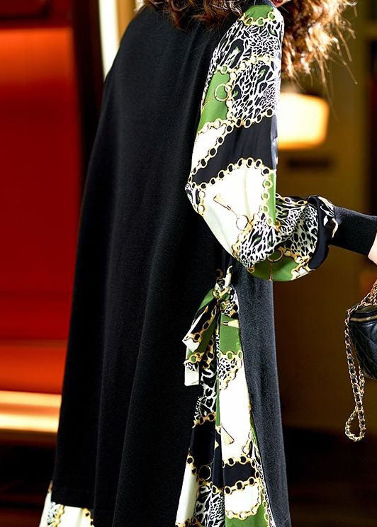 Boutique Colorblock V Neck Print Patchwork Chiffon Dresses Spring