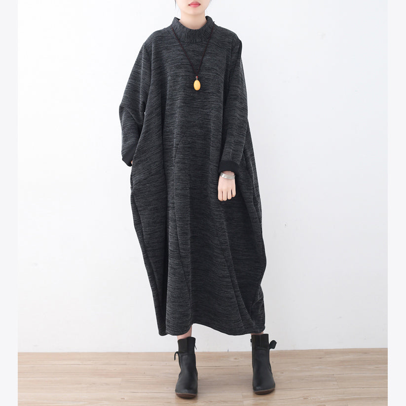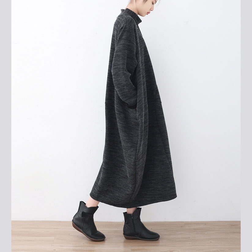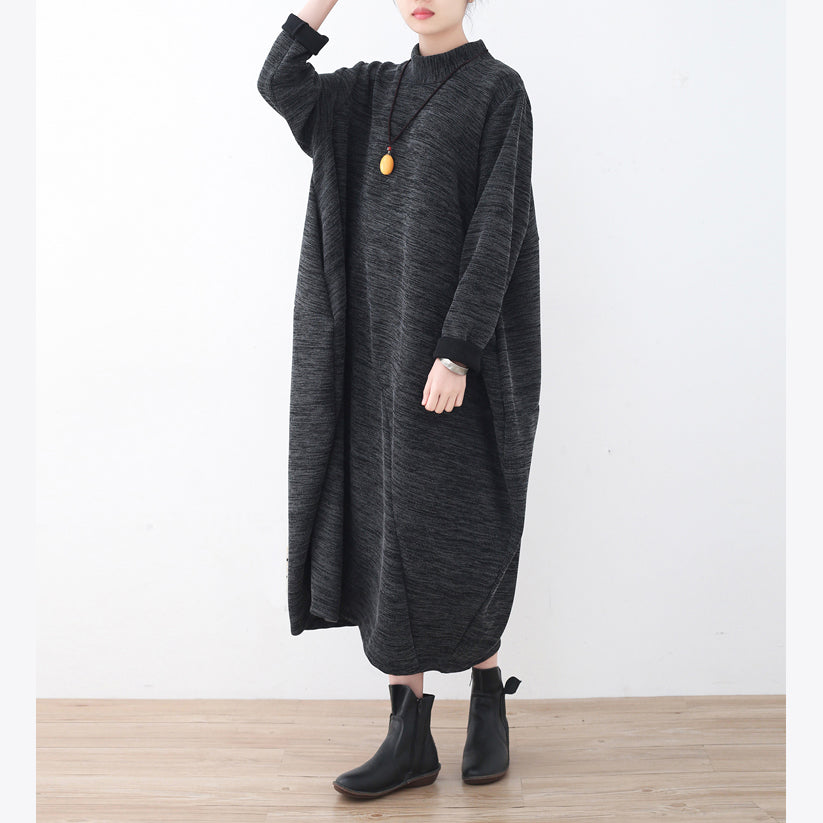 boutique dark gray knit dresses Loose fitting asymmetrical pullover vintage high neck dress