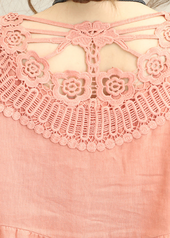 boutique light orange Midi linen dresses oversize linen clothing dress top quality patchwork lace hollow out midi dress
