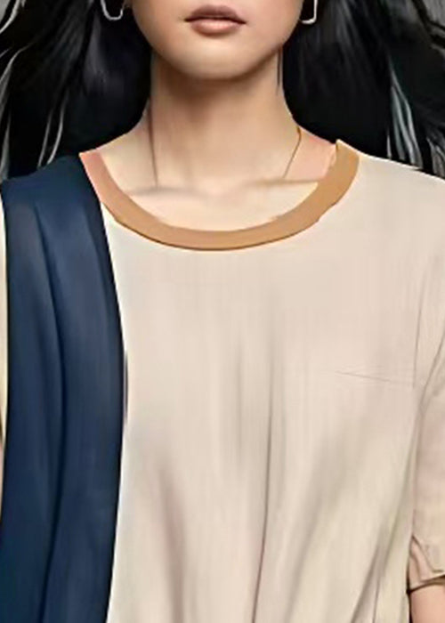 Boutique Nude Tie Waist Patchwork Cotton Dress Summer