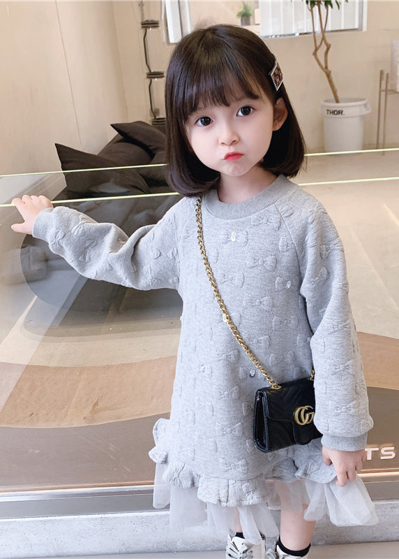 Boutique Pink O Neck Ruffled Tulle Patchwork Cotton Baby Girls Dress Fall