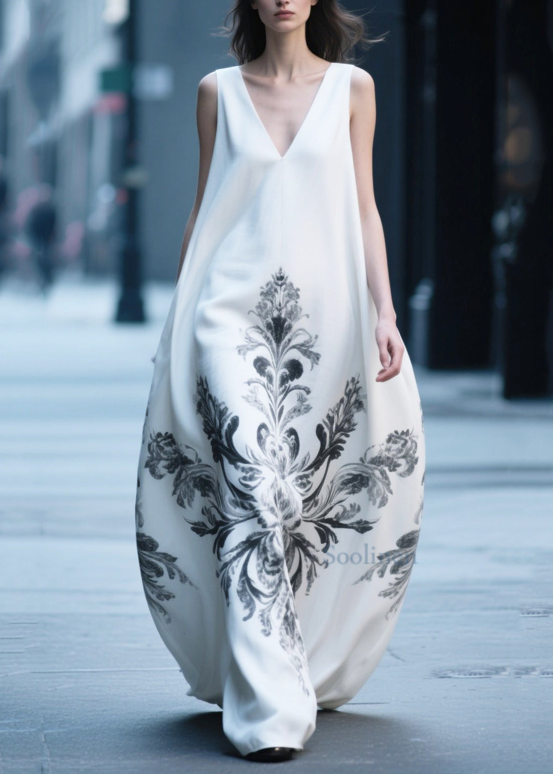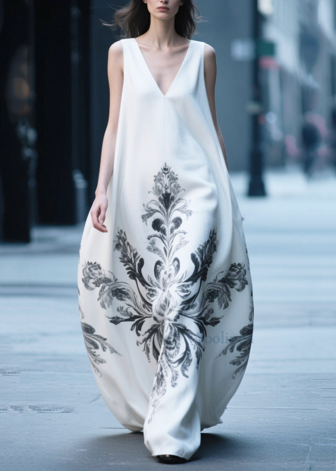 Boutique White Oversized Print Cotton Holiday Dress Sleeveless