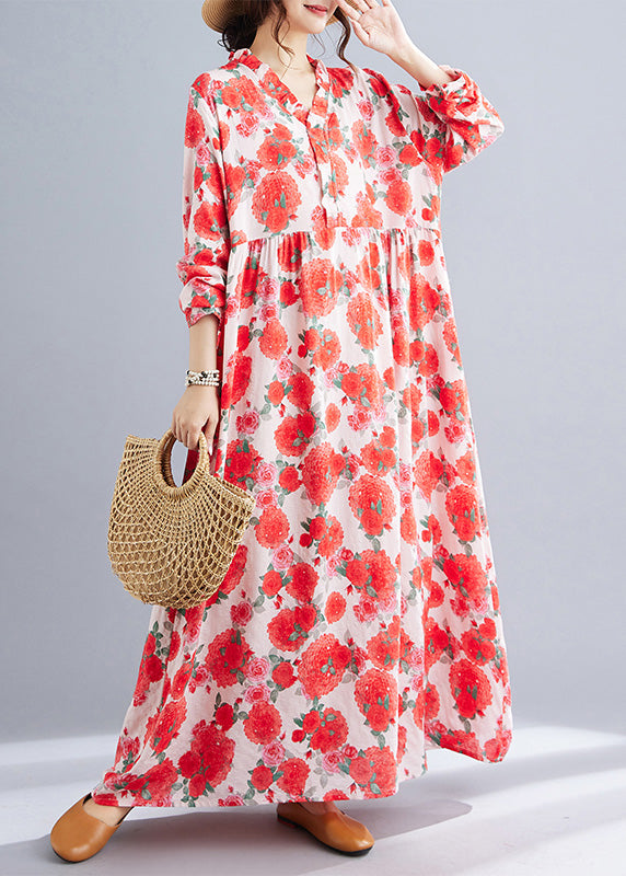 Casual Red Oversized Print Cotton Holiday Dresses Spring