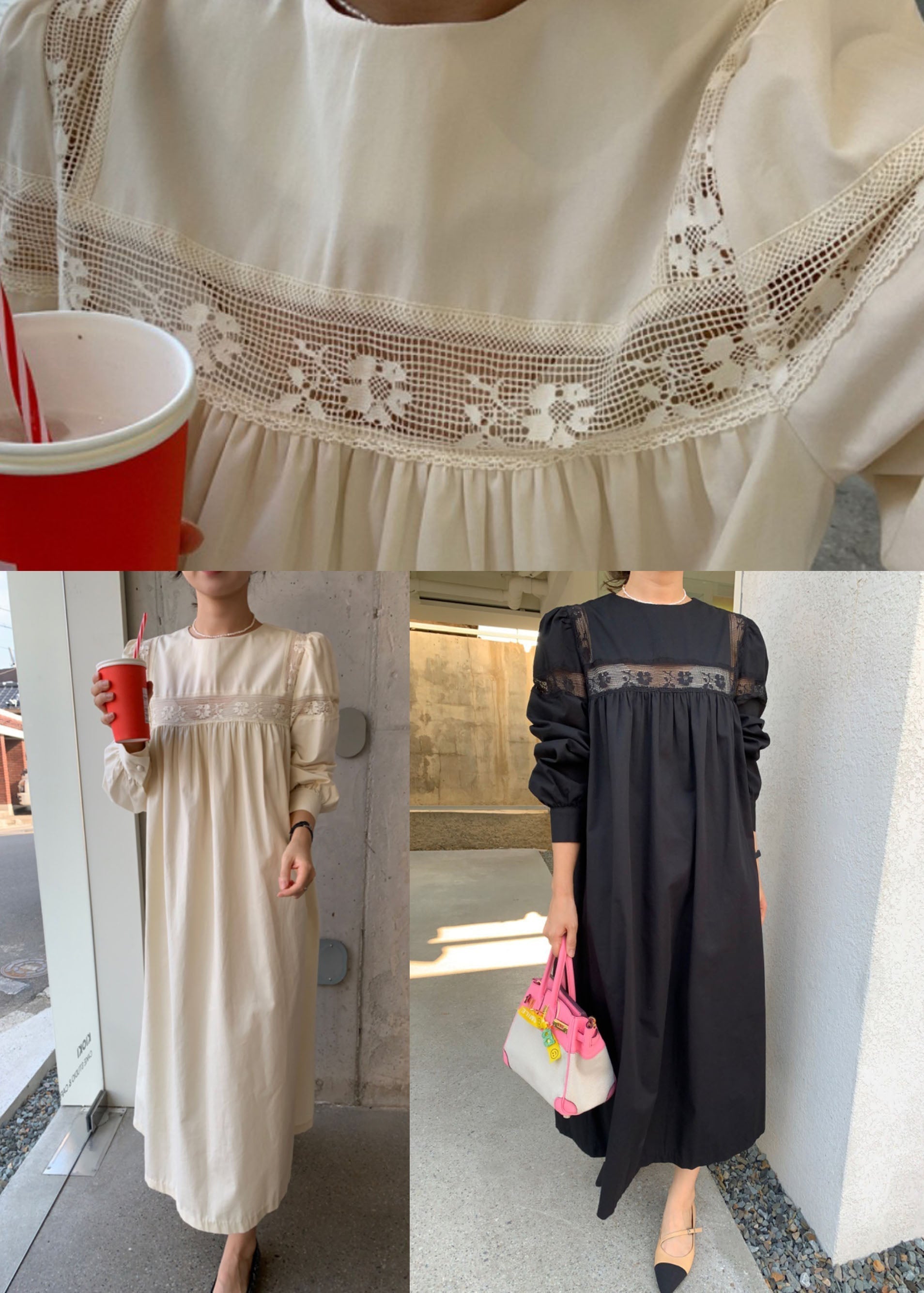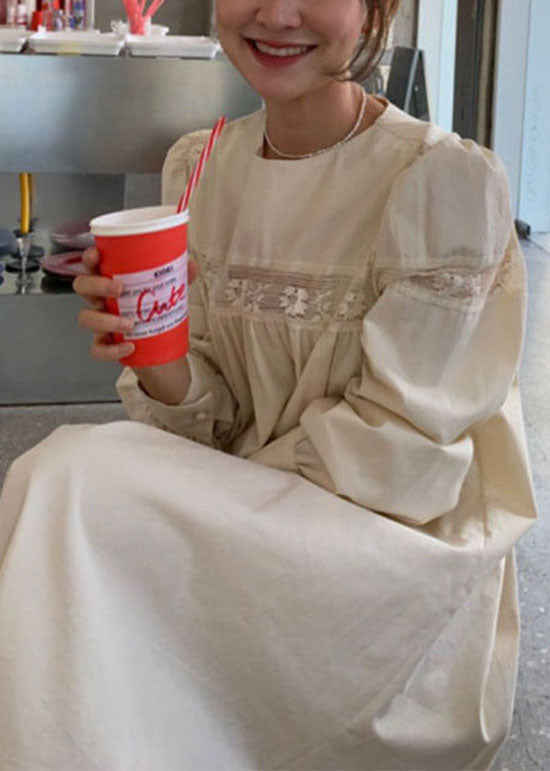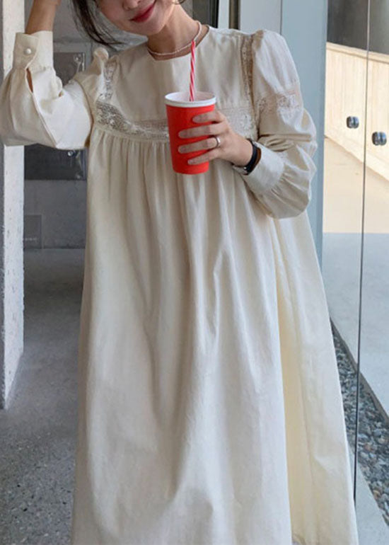 Chic Apricot O Neck Wrinkled Patchwork Cotton Dress Spring