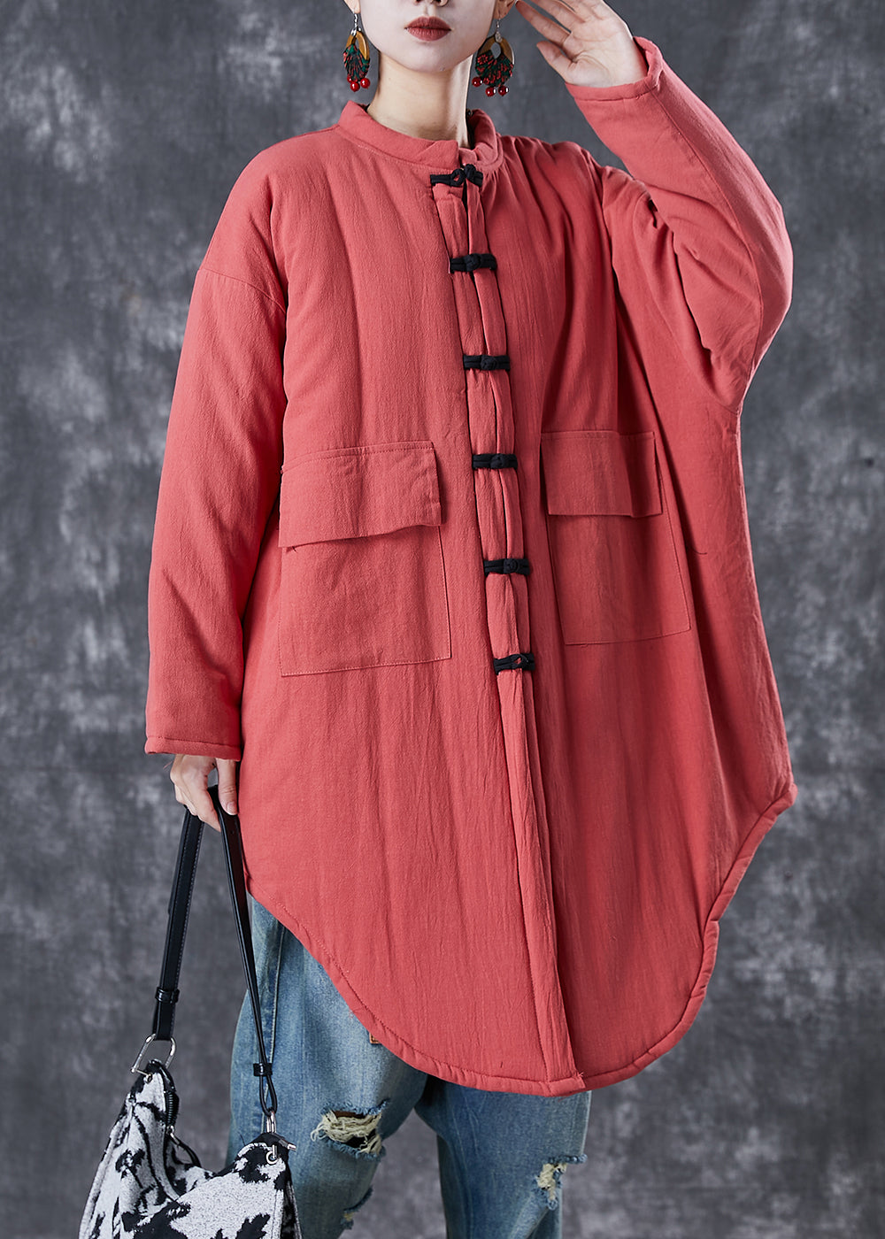 Chic Brick Red Oversized Pockets Fine Cotton Filled Women Witner Coats