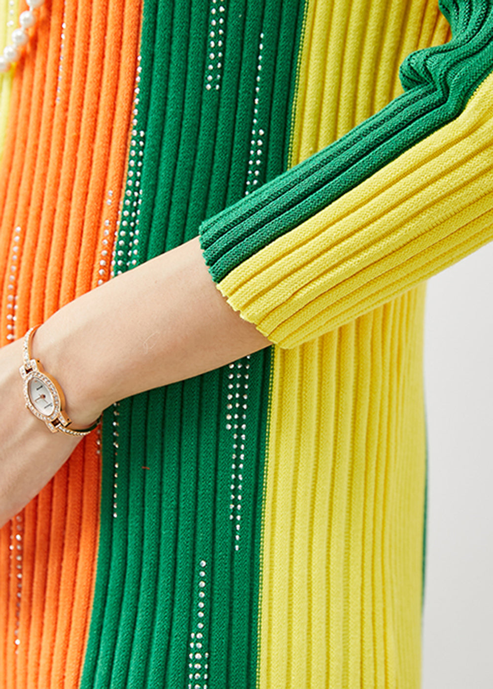 Chic Colorblock Striped Silm Fit Knit Dress Winter