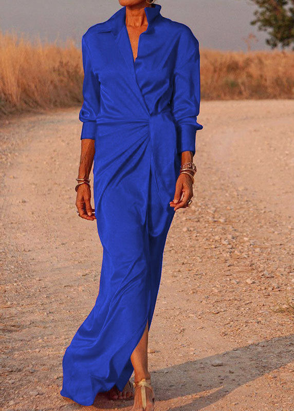 Chic Red Peter Pan Collar Tie Waist Silk Long Dress Spring