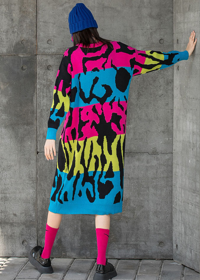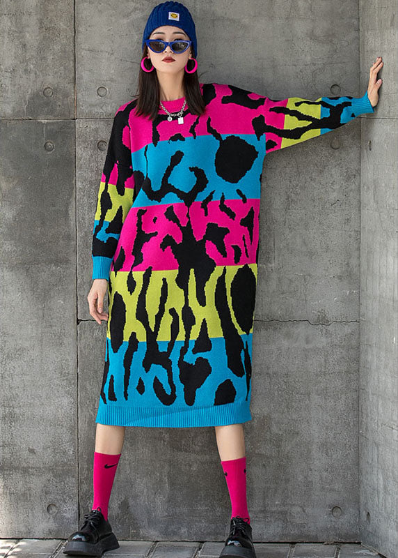 Chic Rose O-Neck Loose Knit Fall Straight Maxi Dress Long sleeve