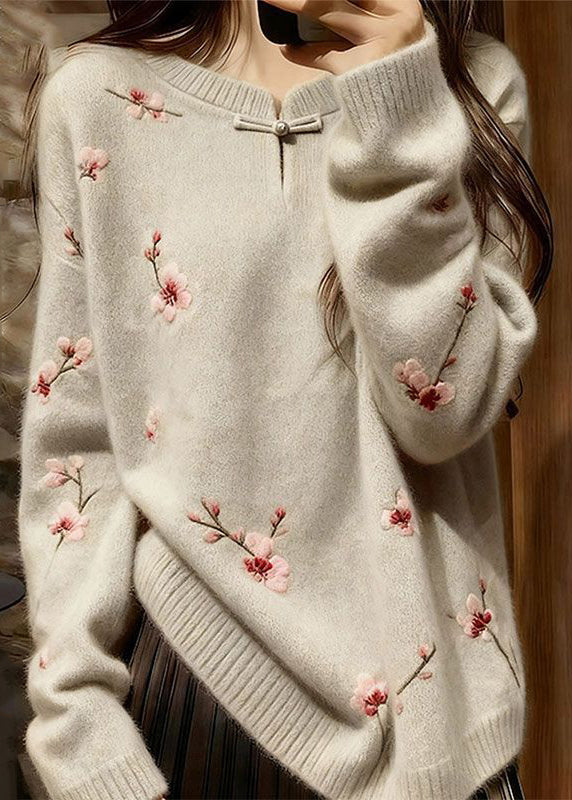 Chinese Style Rose Print Cozy Knit Sweater Spring