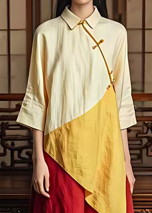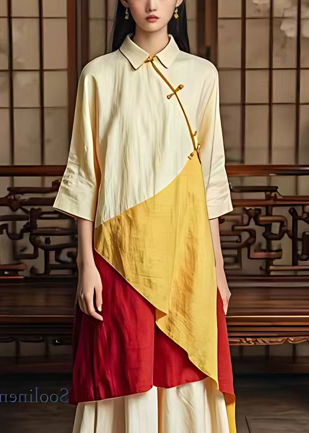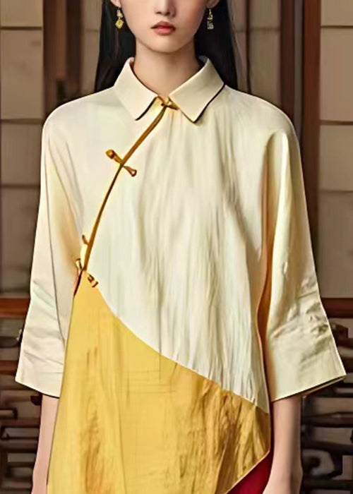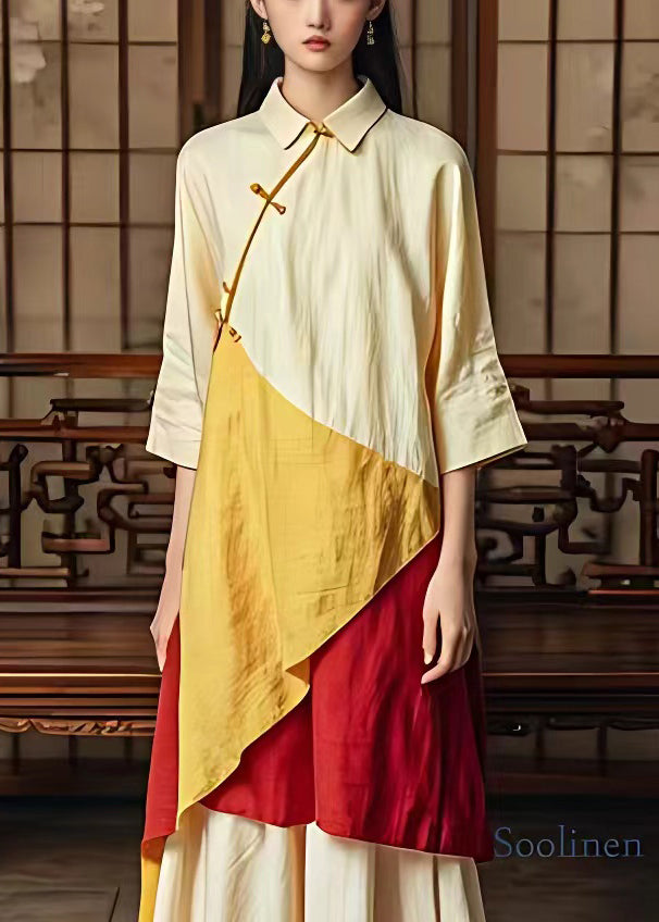 Classy Beige Button Patchwork Cotton Dress Bracelet Sleeve