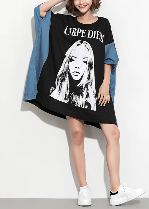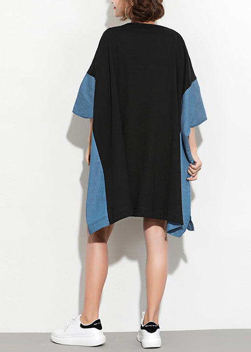 Classy black Cotton tunic dress Vintage Photography patchwork batwing sleeve Summer Dress