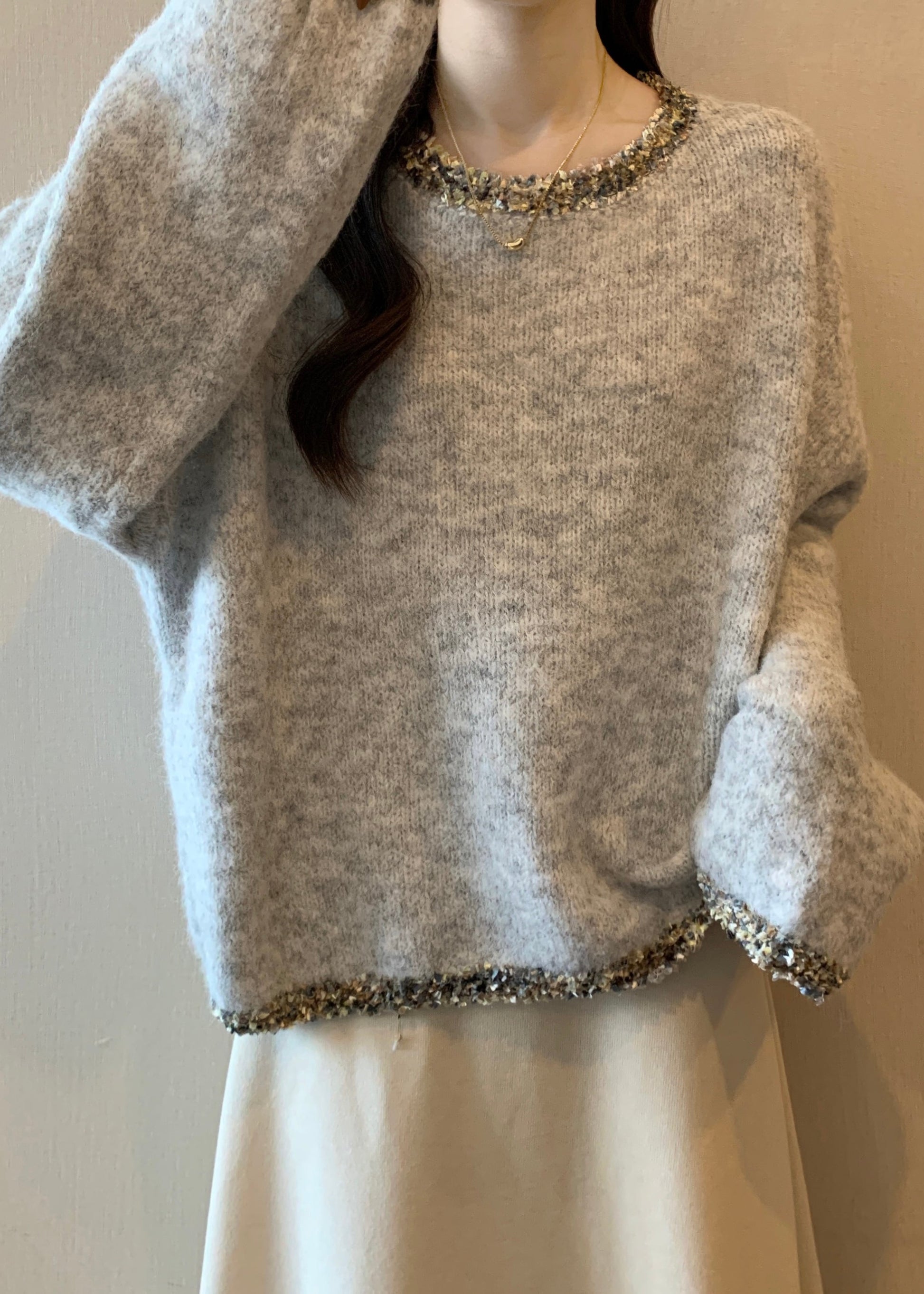 Cozy Grey Sequins Chunky Oversized Knit Sweater Tops Winter