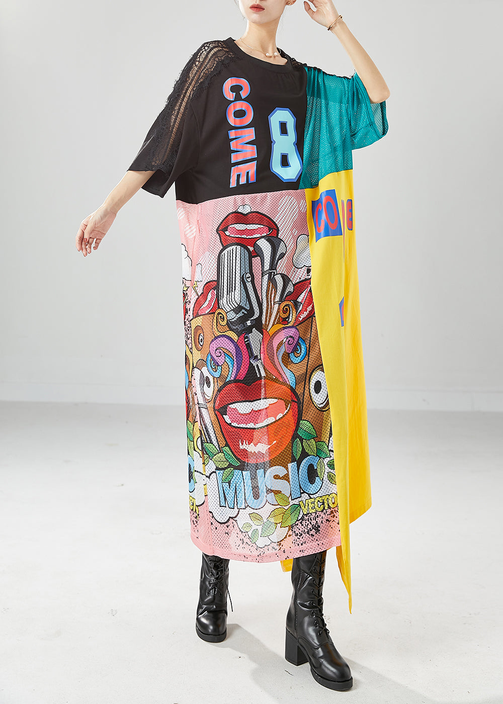 DIY Colorblock Oversized Patchwork Hollow Out Long Dresses Summer