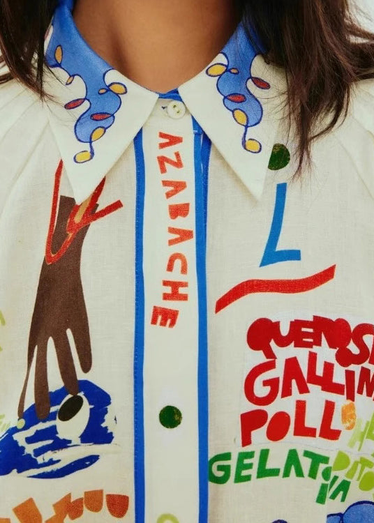 DIY Peter Pan Collar Print Cotton Shirts Dress Summer