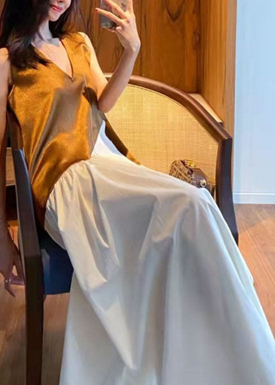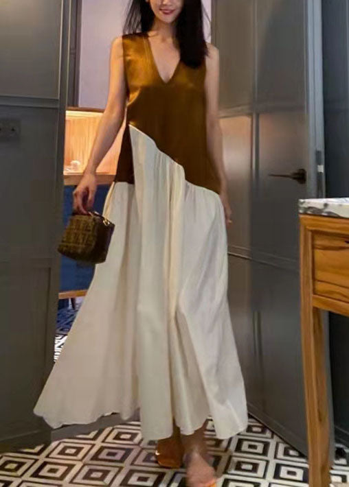 Elegant Black V Neck Asymmetrical Patchwork Cotton Dress Sleeveless