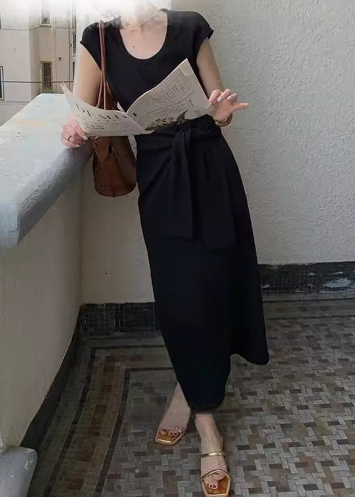 Elegant White U Neck Tie Waist Cotton Dress Summer