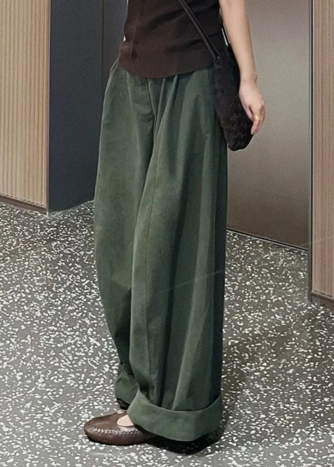 Fine Army Green Oversized Cotton Wide Leg Pants Trousers Spring