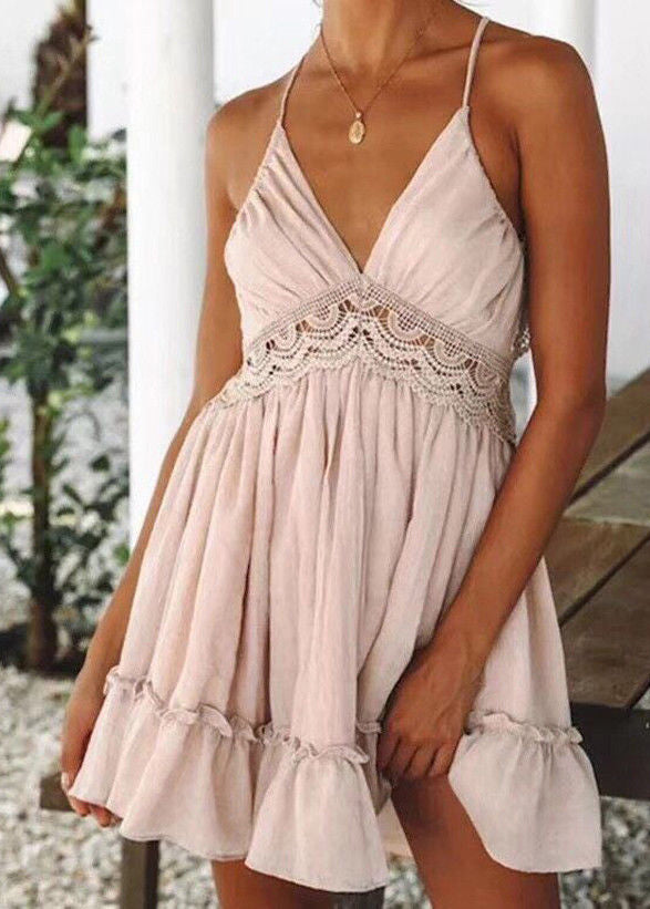 Fine Blue Ruffled Patchwork Lace Day Dress Summer