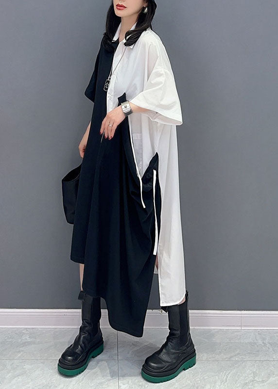 Fine Colorblock Peter Pan Collar Patchwork Cotton Shirts Dress Summer